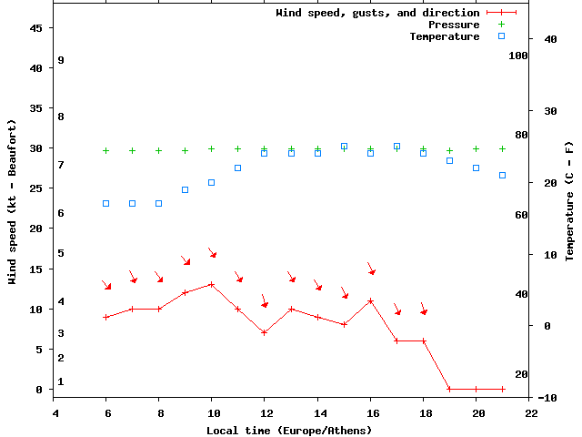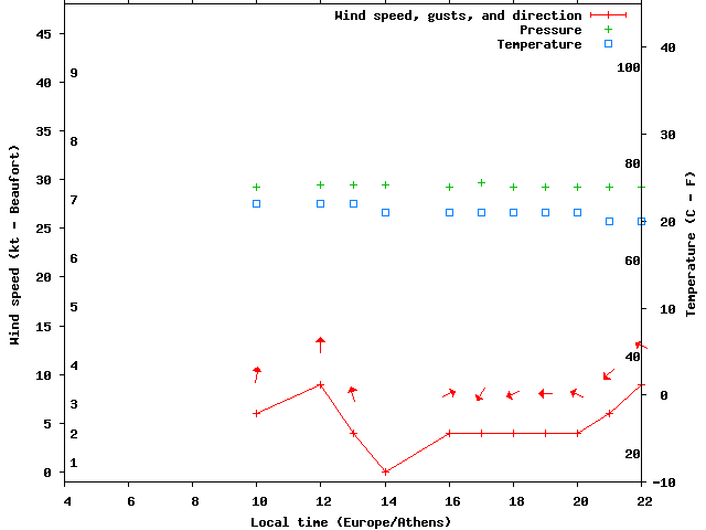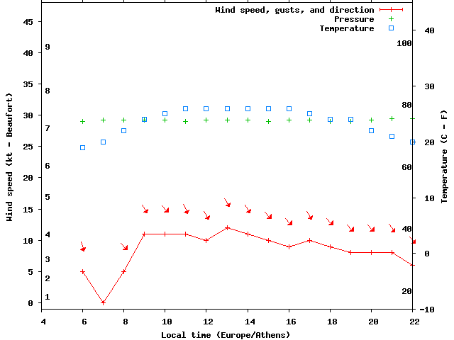 Dawn after 4:00; dusk before 22:00 local time (Europe/Athens).