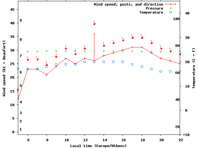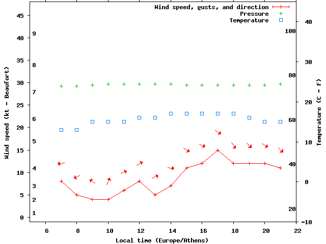 Dawn after 5:00; dusk before 22:00 local time (Europe/Athens).