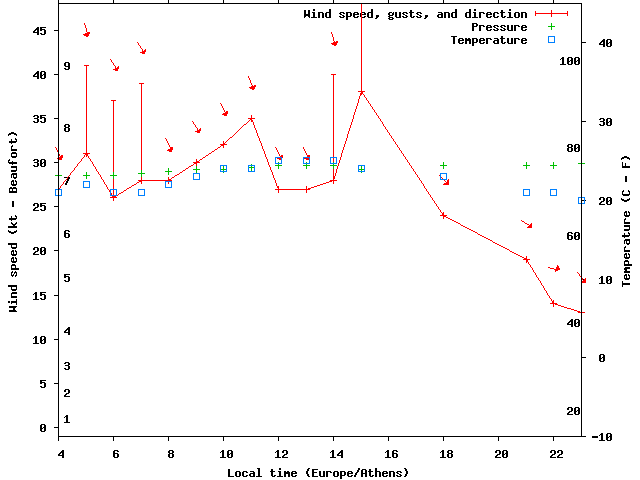 Dawn after 4:00; dusk before 23:00 local time (Europe/Athens).