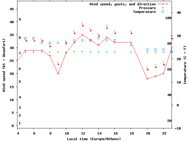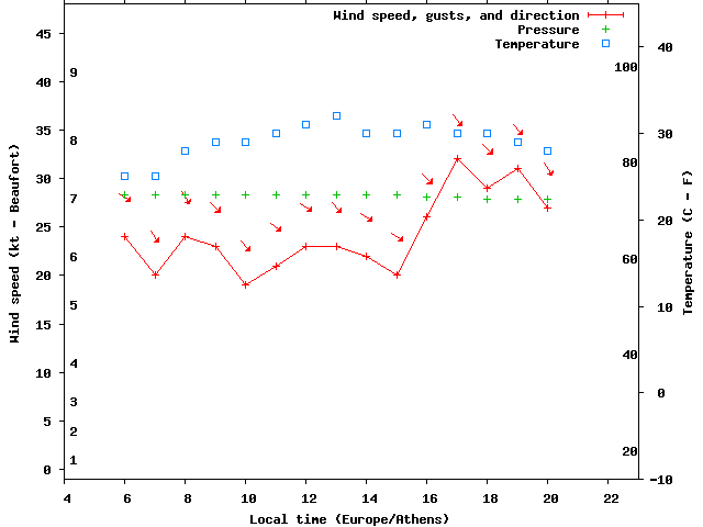 Dawn after 4:00; dusk before 23:00 local time (Europe/Athens).