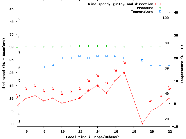 Dawn after 5:00; dusk before 22:00 local time (Europe/Athens).