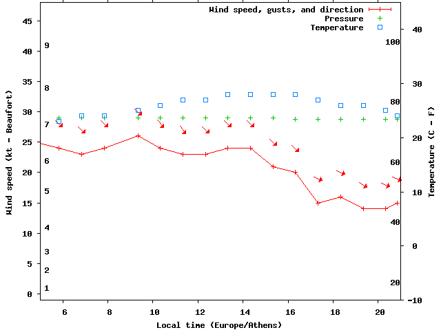 Dawn after 5:00; dusk before 21:00 local time (Europe/Athens).