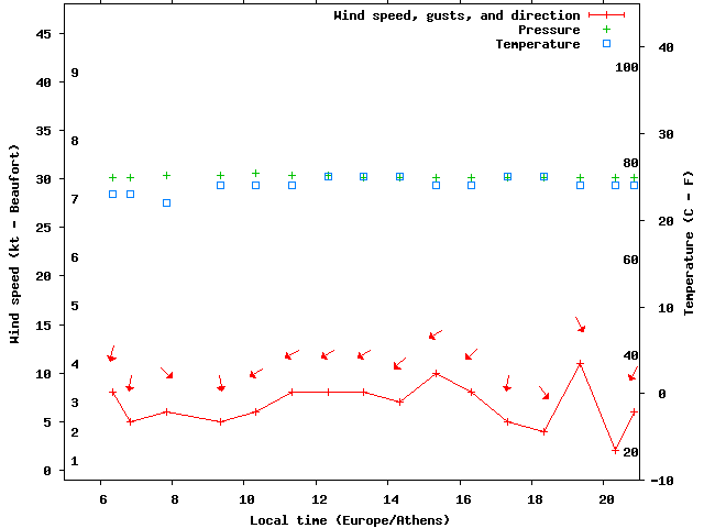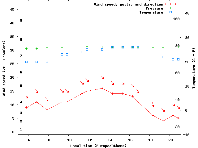 Dawn after 5:00; dusk before 21:00 local time (Europe/Athens).