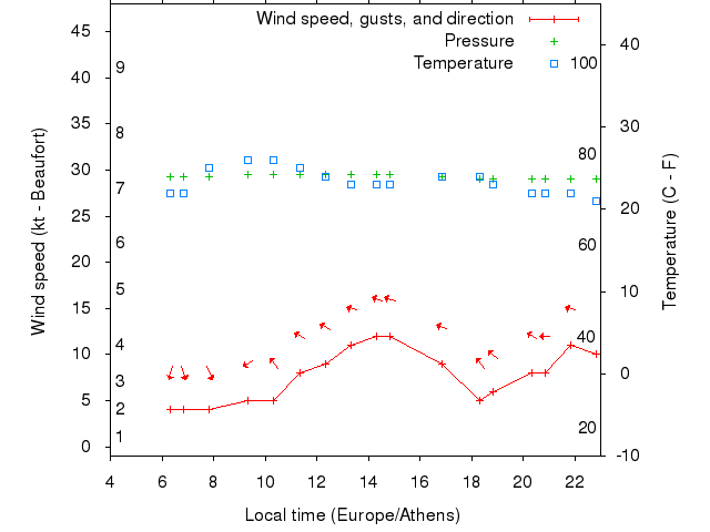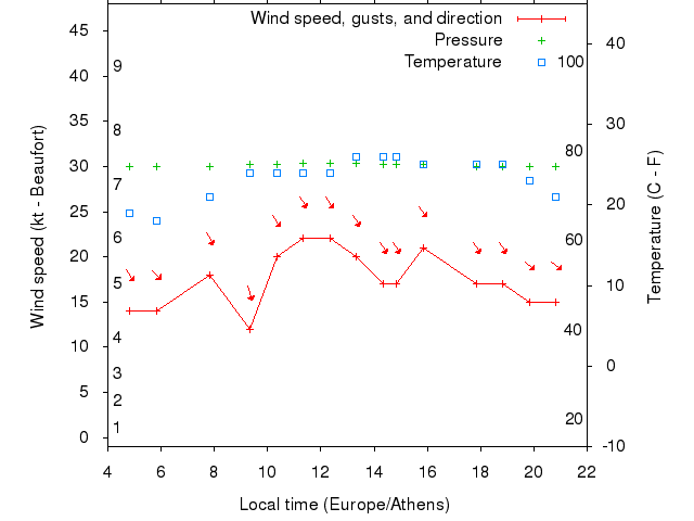 Dawn after 4:00; dusk before 22:00 local time (Europe/Athens).
