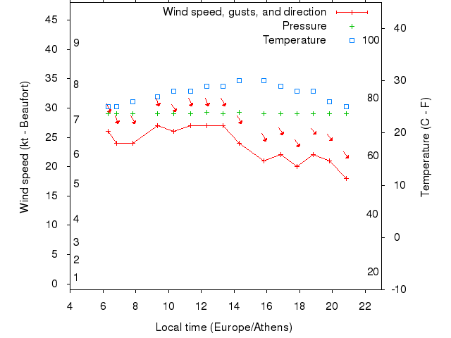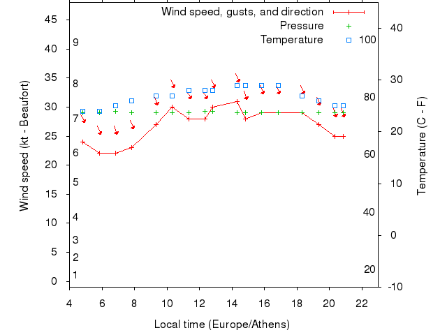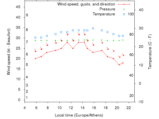 Dawn after 4:00; dusk before 23:00 local time (Europe/Athens).