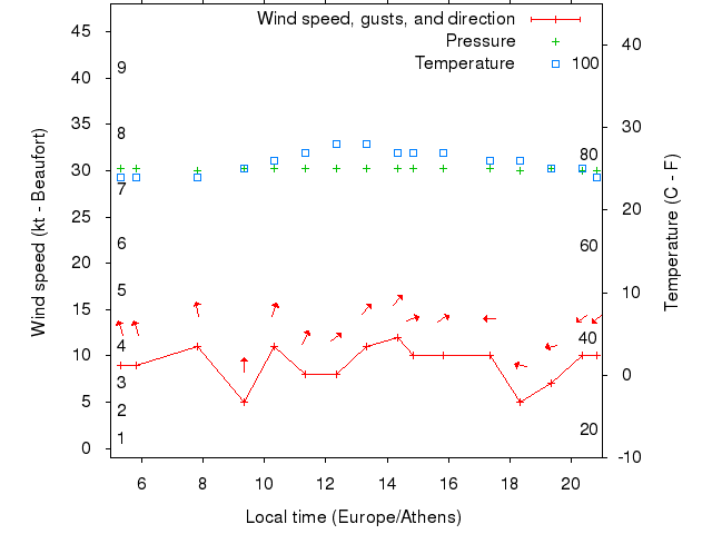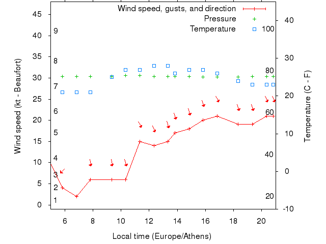 Dawn after 5:00; dusk before 21:00 local time (Europe/Athens).