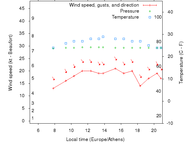 Dawn after 5:00; dusk before 22:00 local time (Europe/Athens).