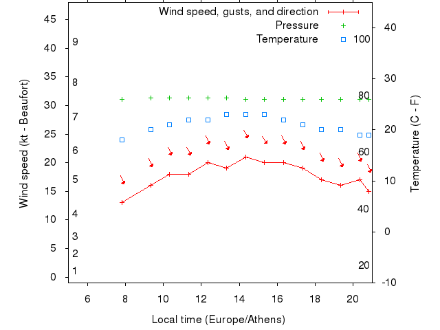 Dawn after 5:00; dusk before 21:00 local time (Europe/Athens).