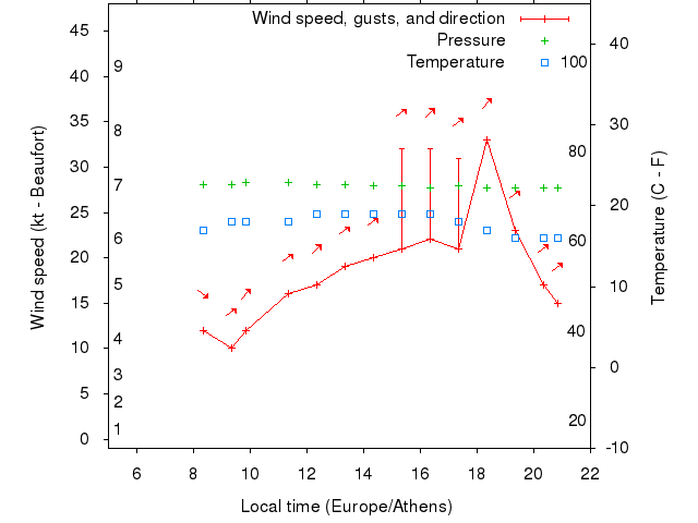 Dawn after 5:00; dusk before 22:00 local time (Europe/Athens).