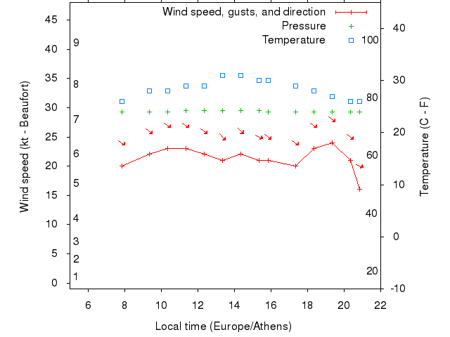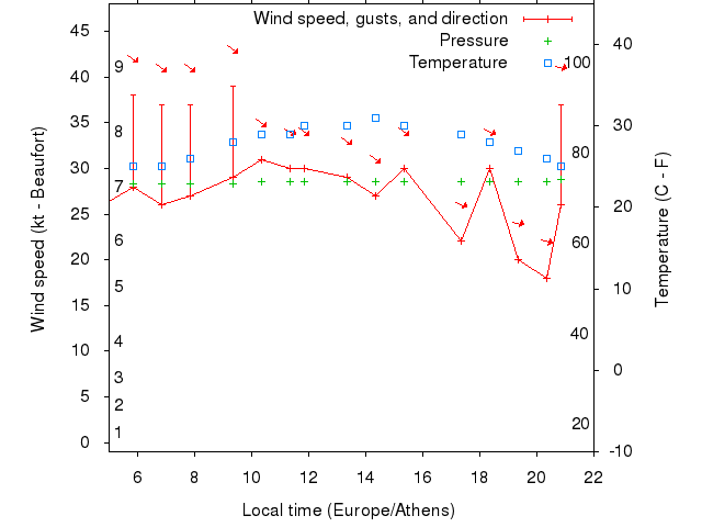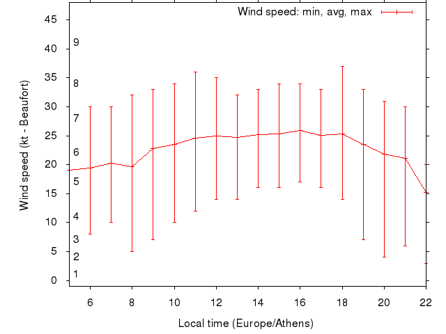 Dawn after 5:00; dusk before 22:00 local time (Europe/Athens).