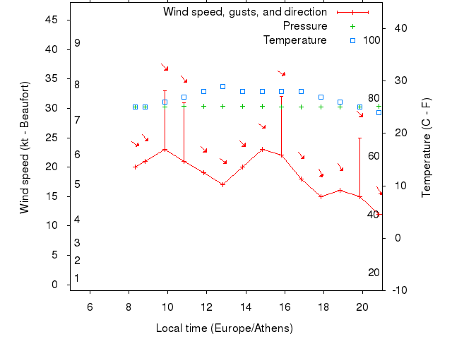 Dawn after 5:00; dusk before 21:00 local time (Europe/Athens).