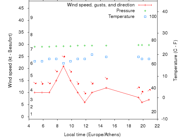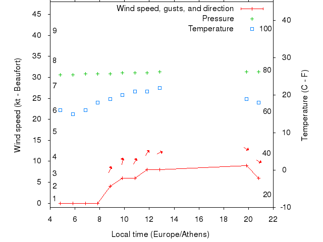 Dawn after 4:00; dusk before 22:00 local time (Europe/Athens).