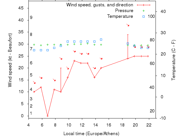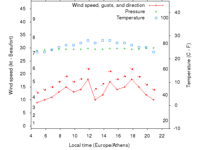 Dawn after 4:00; dusk before 23:00 local time (Europe/Athens).