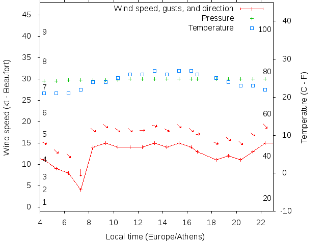 Dawn after 4:00; dusk before 23:00 local time (Europe/Athens).