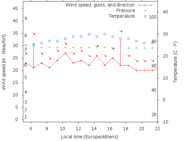Dawn after 5:00; dusk before 22:00 local time (Europe/Athens).