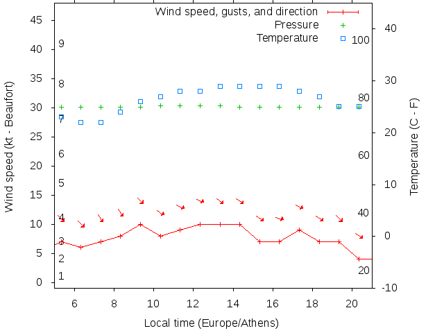 Dawn after 5:00; dusk before 21:00 local time (Europe/Athens).