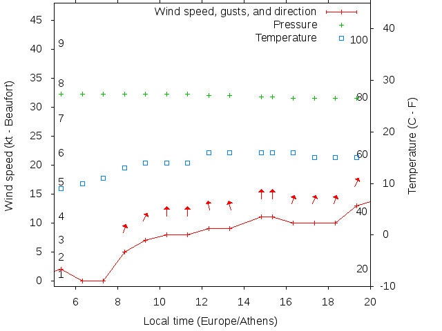 Dawn after 5:00; dusk before 20:00 local time (Europe/Athens).