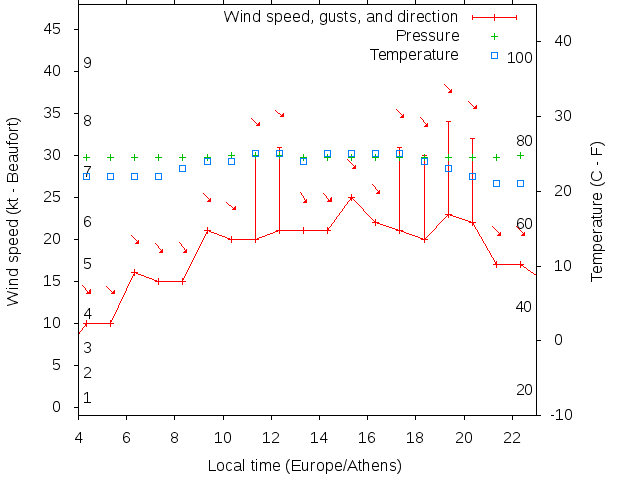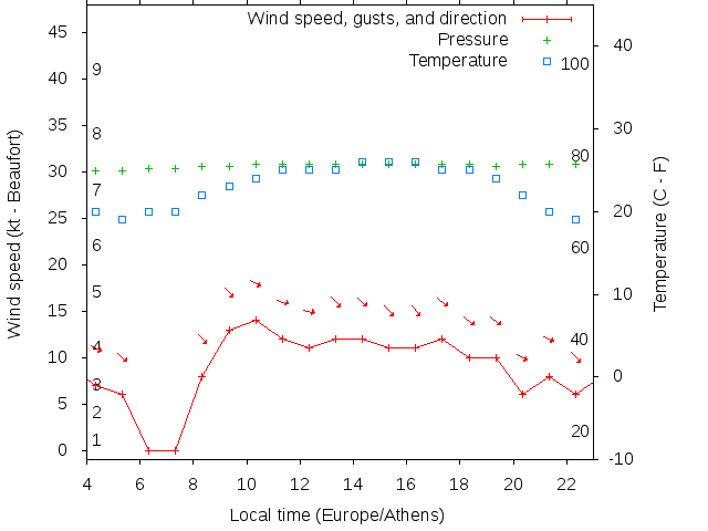 Dawn after 4:00; dusk before 23:00 local time (Europe/Athens).