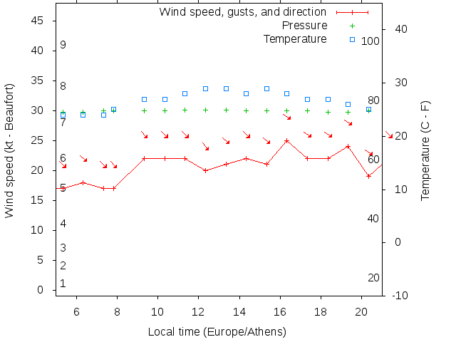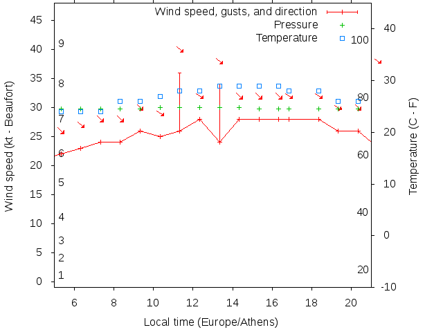 Dawn after 5:00; dusk before 22:00 local time (Europe/Athens).