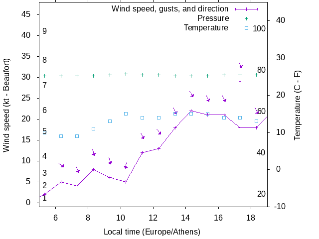 Dawn after 5:00; dusk before 19:00 local time (Europe/Athens).