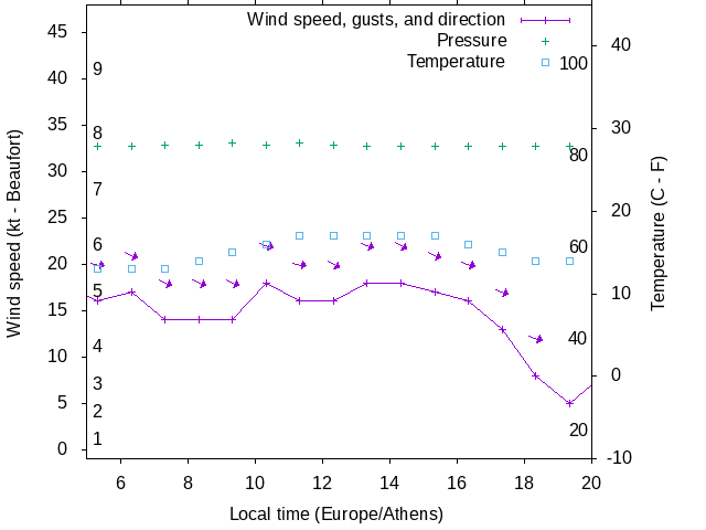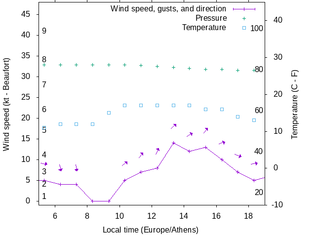 Dawn after 5:00; dusk before 19:00 local time (Europe/Athens).