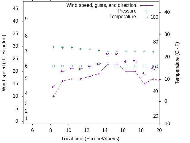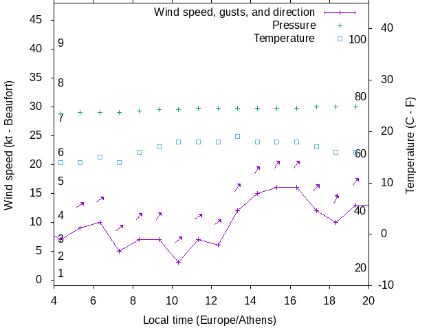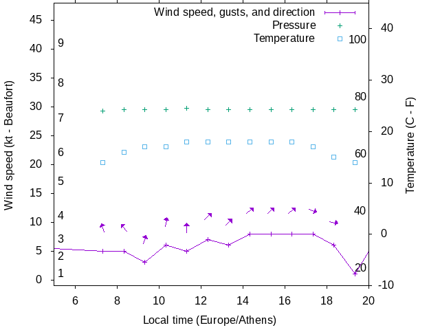 Dawn after 5:00; dusk before 20:00 local time (Europe/Athens).