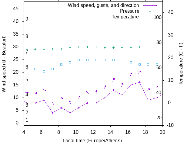 Dawn after 4:00; dusk before 20:00 local time (Europe/Athens).