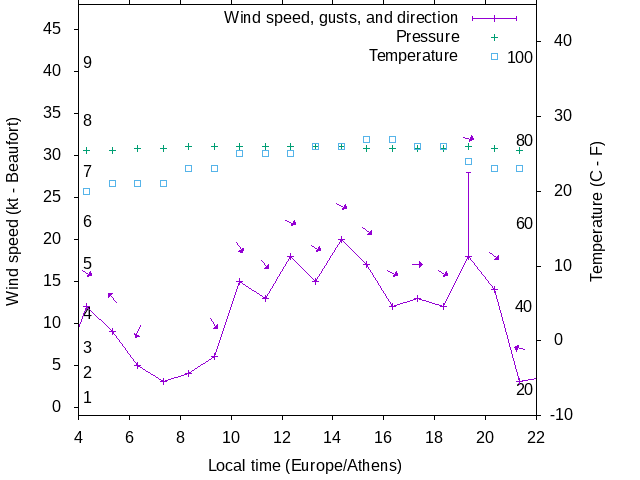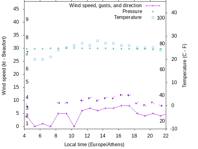 Dawn after 4:00; dusk before 22:00 local time (Europe/Athens).