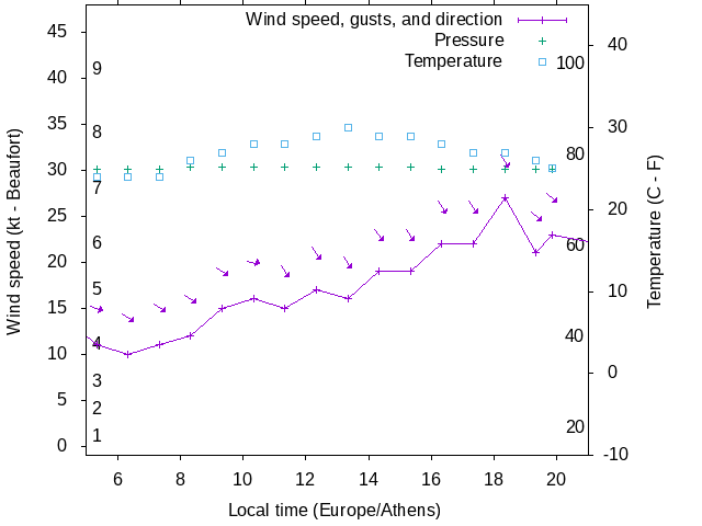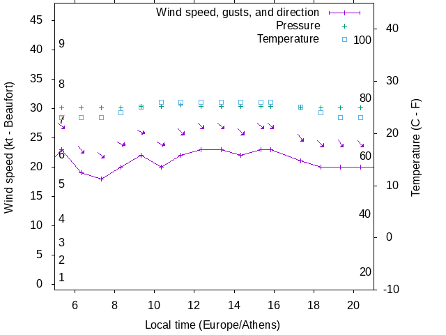 Dawn after 5:00; dusk before 21:00 local time (Europe/Athens).