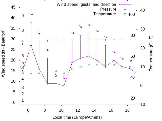 Dawn after 5:00; dusk before 19:00 local time (Europe/Athens).