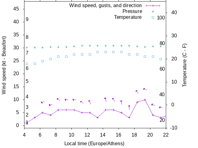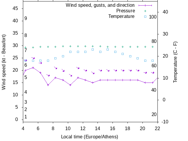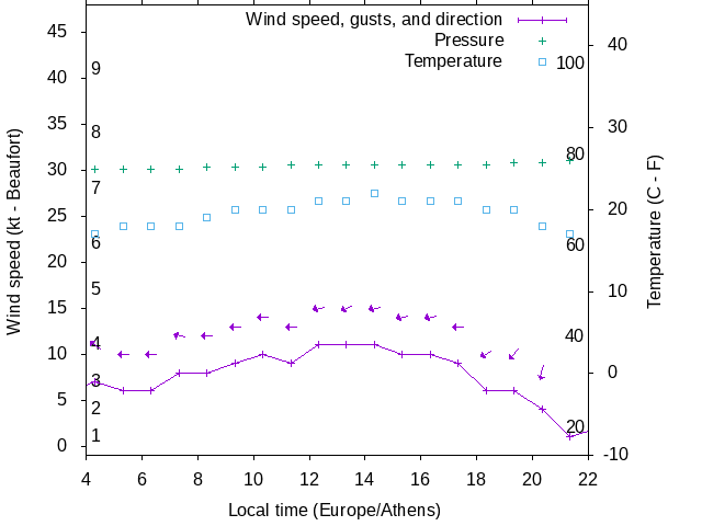 Dawn after 4:00; dusk before 22:00 local time (Europe/Athens).