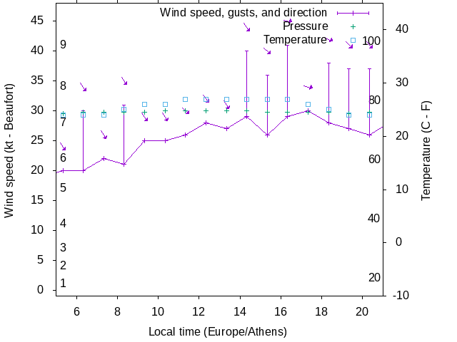 Dawn after 5:00; dusk before 21:00 local time (Europe/Athens).