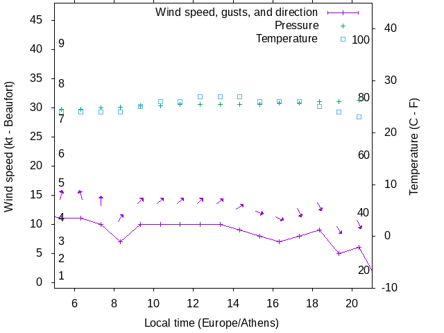 Dawn after 5:00; dusk before 21:00 local time (Europe/Athens).