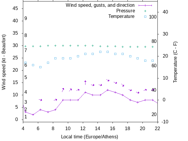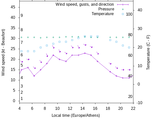 Dawn after 4:00; dusk before 22:00 local time (Europe/Athens).