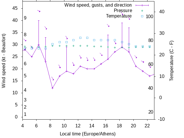 Dawn after 4:00; dusk before 23:00 local time (Europe/Athens).