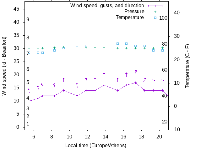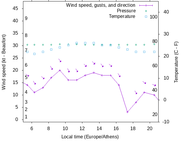 Dawn after 5:00; dusk before 21:00 local time (Europe/Athens).