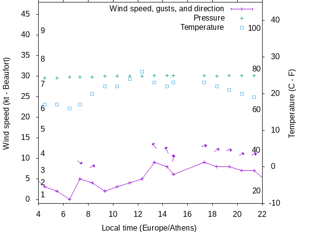 Dawn after 4:00; dusk before 22:00 local time (Europe/Athens).