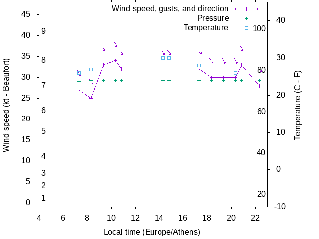 Dawn after 4:00; dusk before 23:00 local time (Europe/Athens).