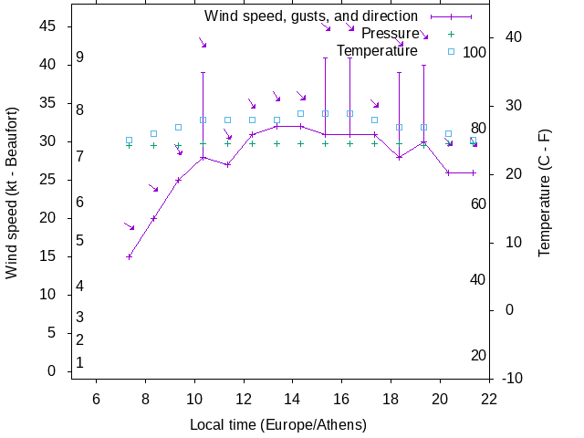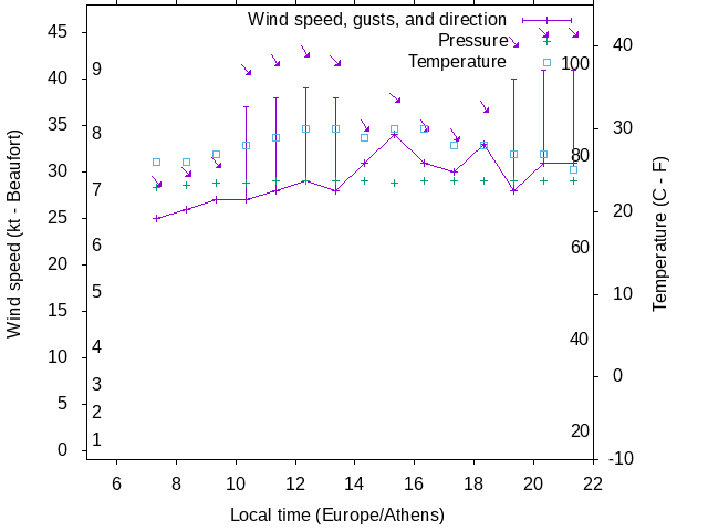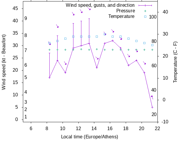 Dawn after 5:00; dusk before 22:00 local time (Europe/Athens).