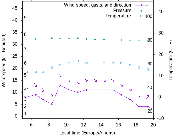 Dawn after 5:00; dusk before 20:00 local time (Europe/Athens).