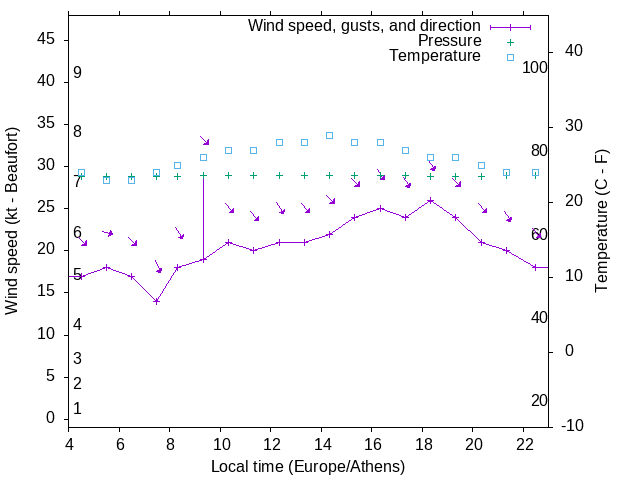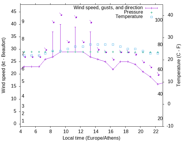 Dawn after 4:00; dusk before 23:00 local time (Europe/Athens).
