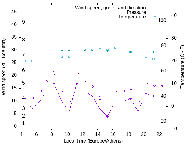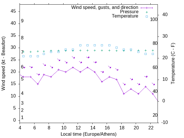 Dawn after 4:00; dusk before 23:00 local time (Europe/Athens).