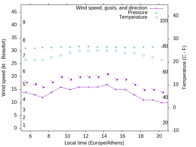 Dawn after 5:00; dusk before 21:00 local time (Europe/Athens).