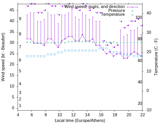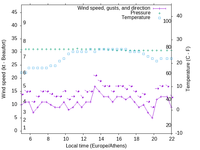 Dawn after 5:00; dusk before 22:00 local time (Europe/Athens).