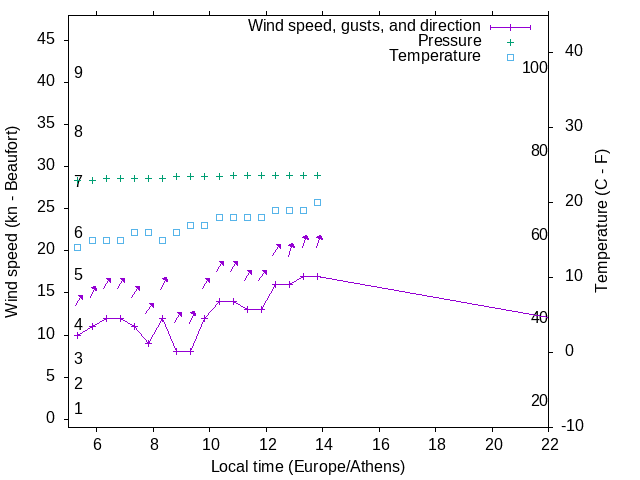Dawn after 5:00; dusk before 22:00 local time (Europe/Athens).