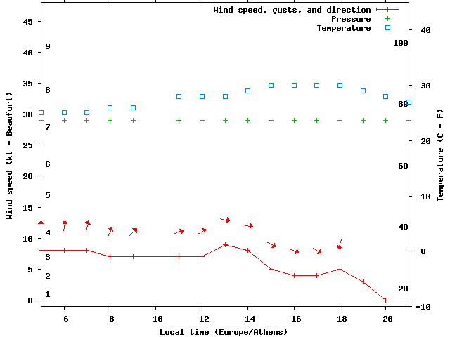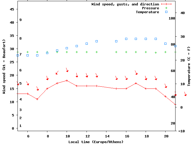 Dawn after 5:00; dusk before 22:00 local time (Europe/Athens).