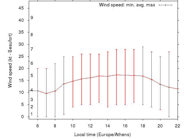 Dawn after 5:00; dusk before 22:00 local time (Europe/Athens).