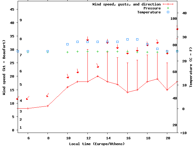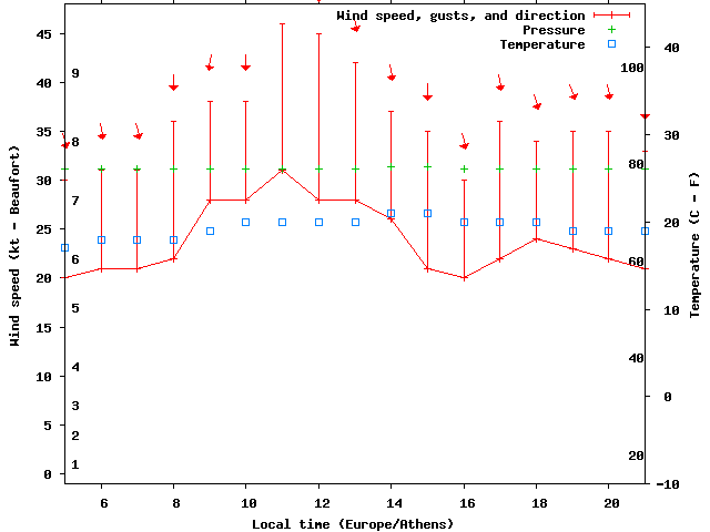 Dawn after 5:00; dusk before 21:00 local time (Europe/Athens).