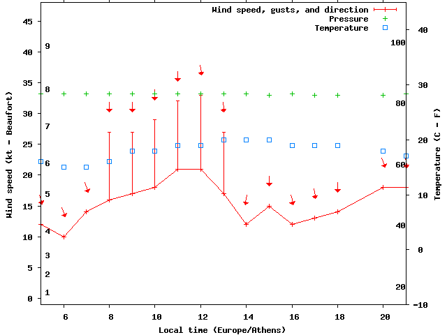 Dawn after 5:00; dusk before 21:00 local time (Europe/Athens).