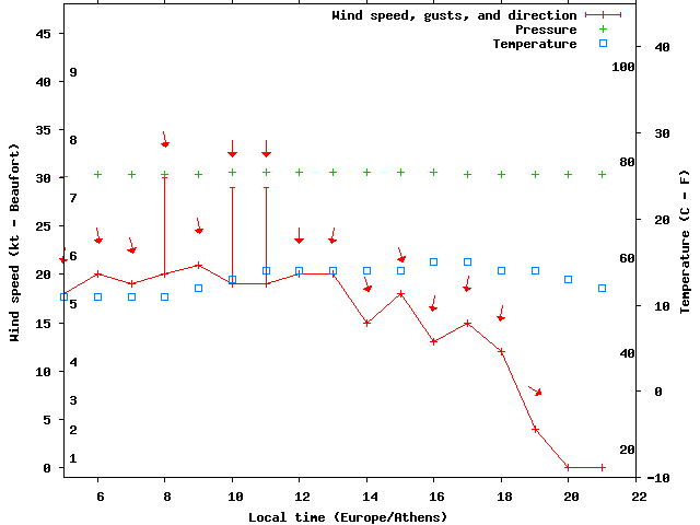 Dawn after 5:00; dusk before 20:00 local time (Europe/Athens).